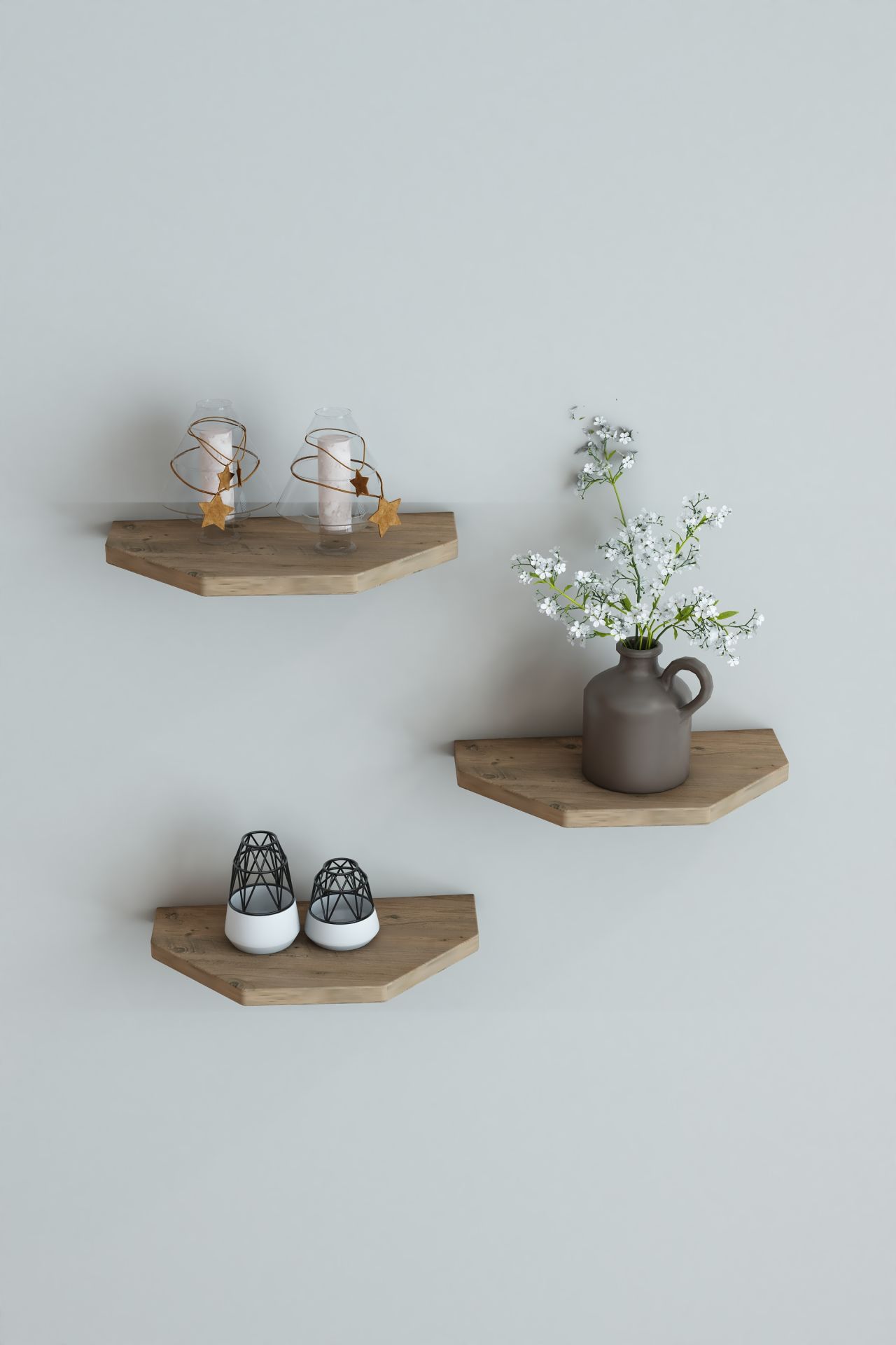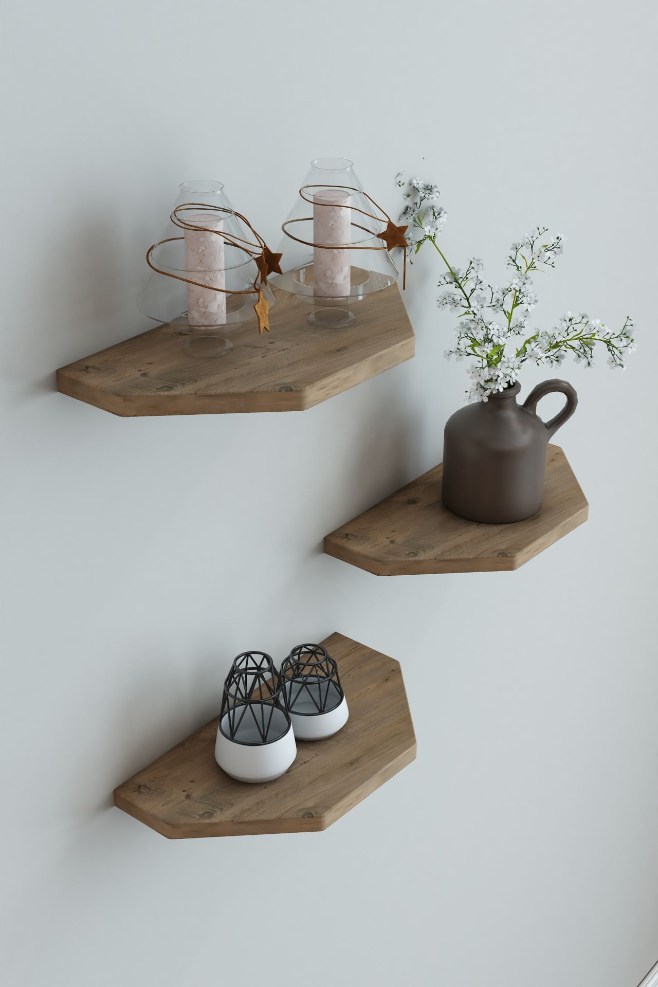 3'Lü Dekoratif Şık Duvar Rafı Uçan Raf Gizli Raf İskandinav Tasarım Modern Kitap Rafı Biblo Rafı-