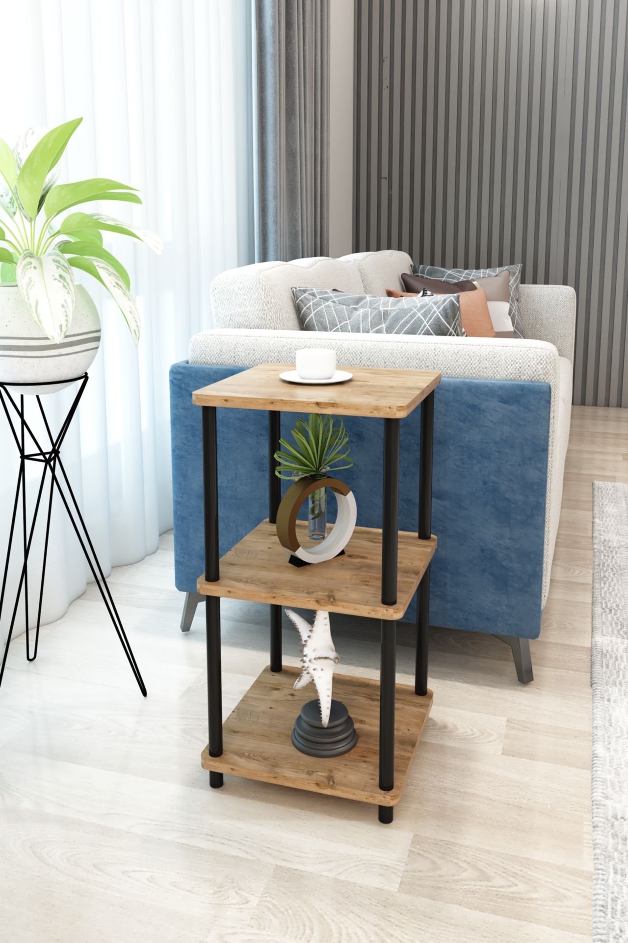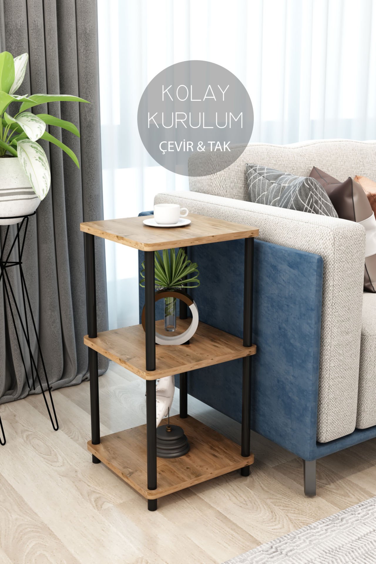 3 Raflı Kare Tasarım Yan Sehpa Kitaplık Özel Tasarım Dekoratif Çevir Kur Kolay Kurulum
