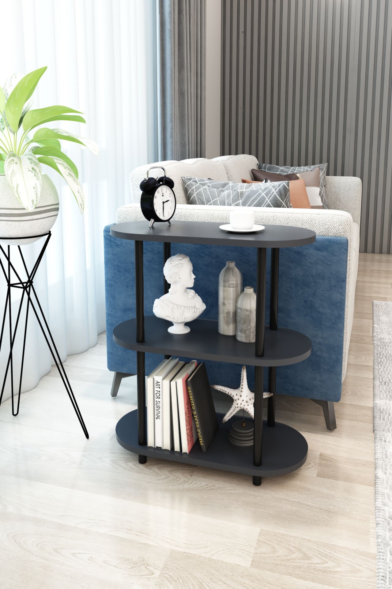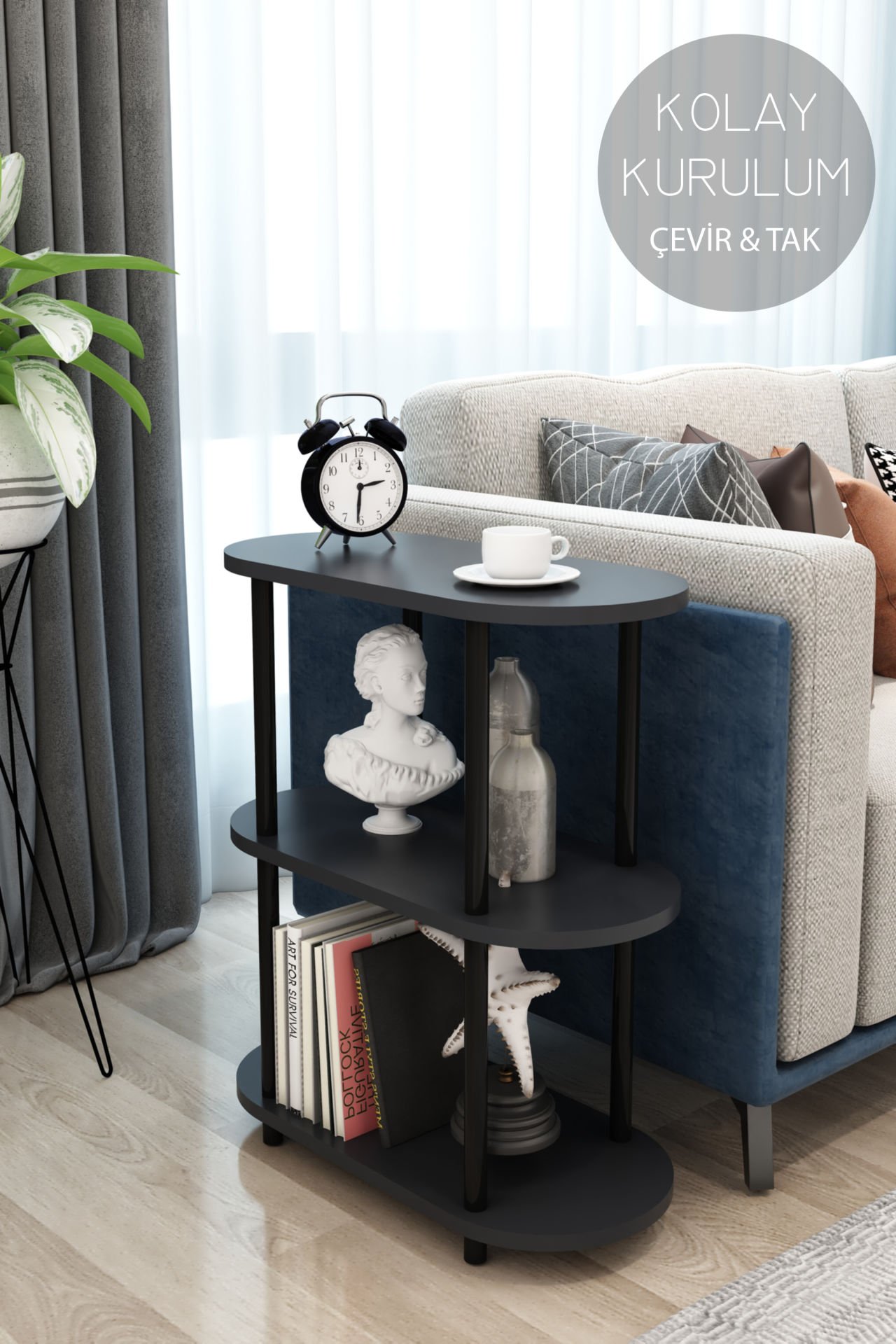 3 Raflı Oval Tasarım Çevir Tak Yan Sehpa Kitaplık Dekoratif Özel Tasarım Çevir Kur Kolay Montaj