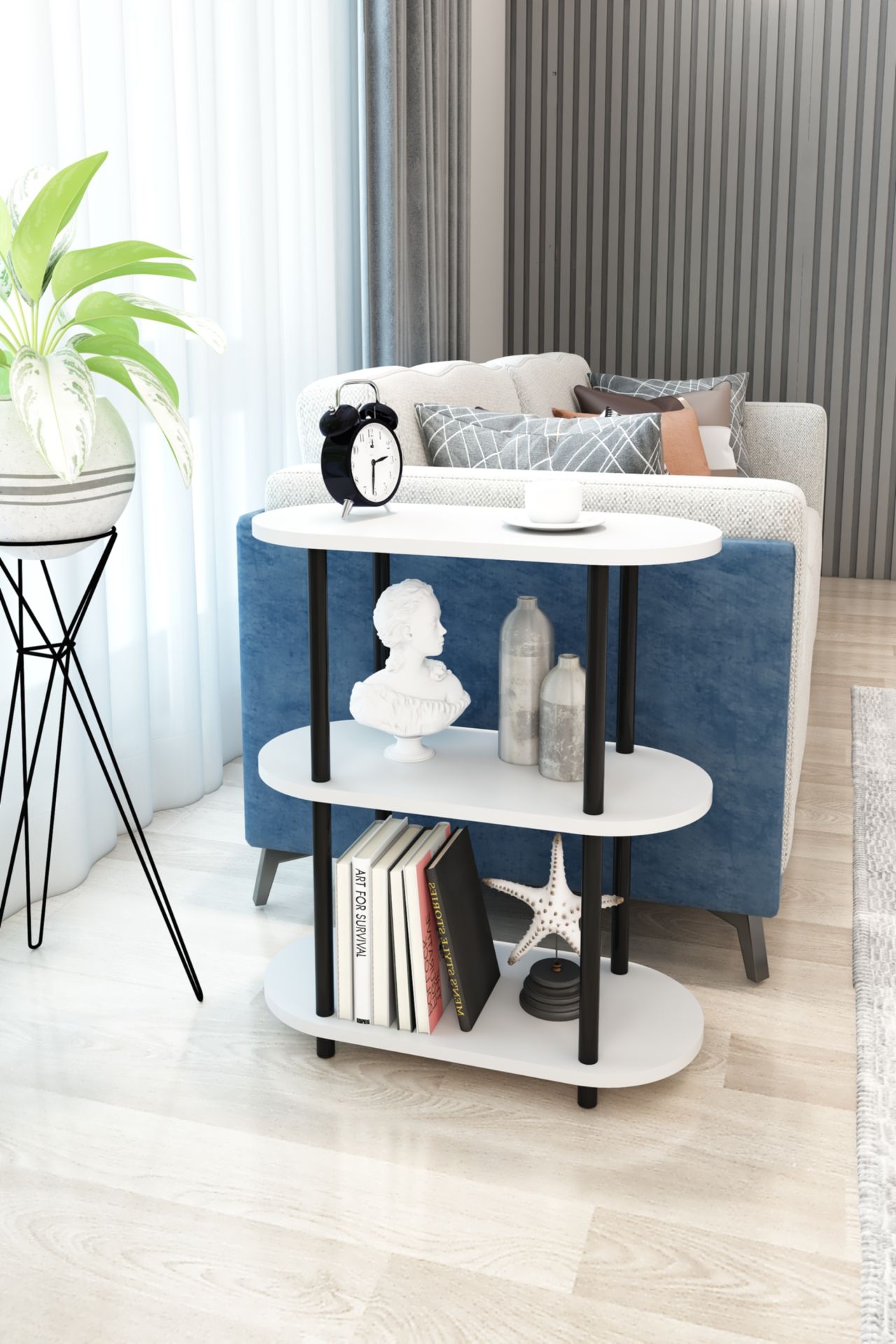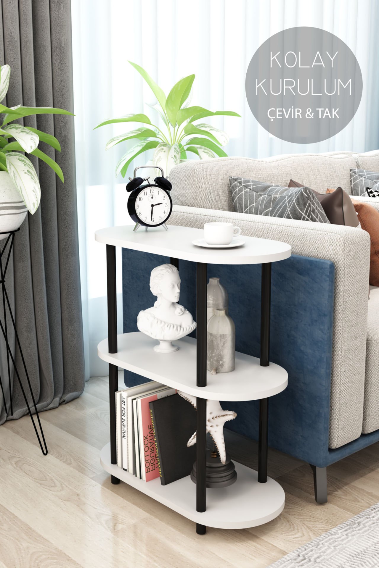 3 Raflı Oval Tasarım Çevir Tak Yan Sehpa Kitaplık Dekoratif Özel Tasarım Kolay Montaj