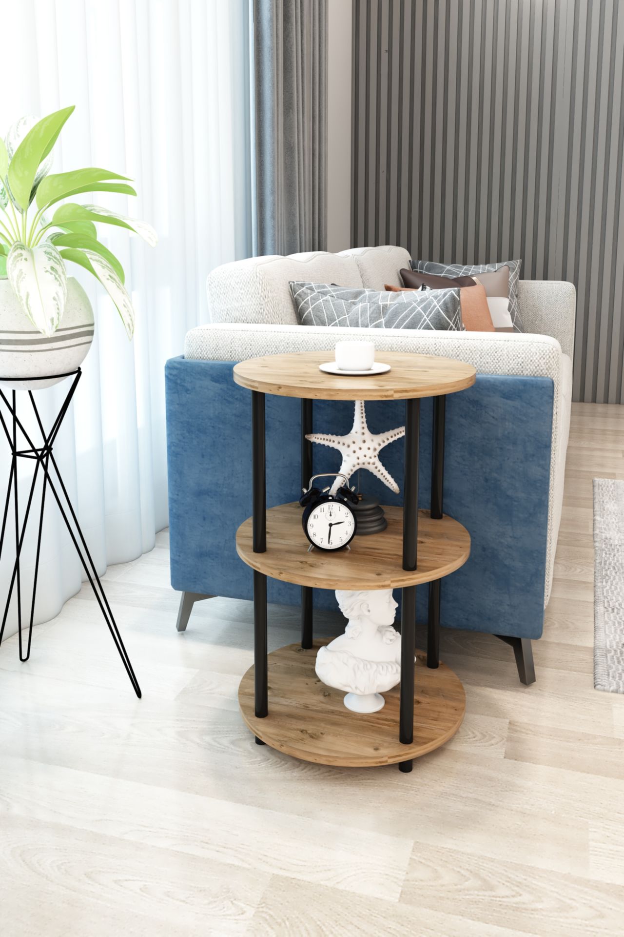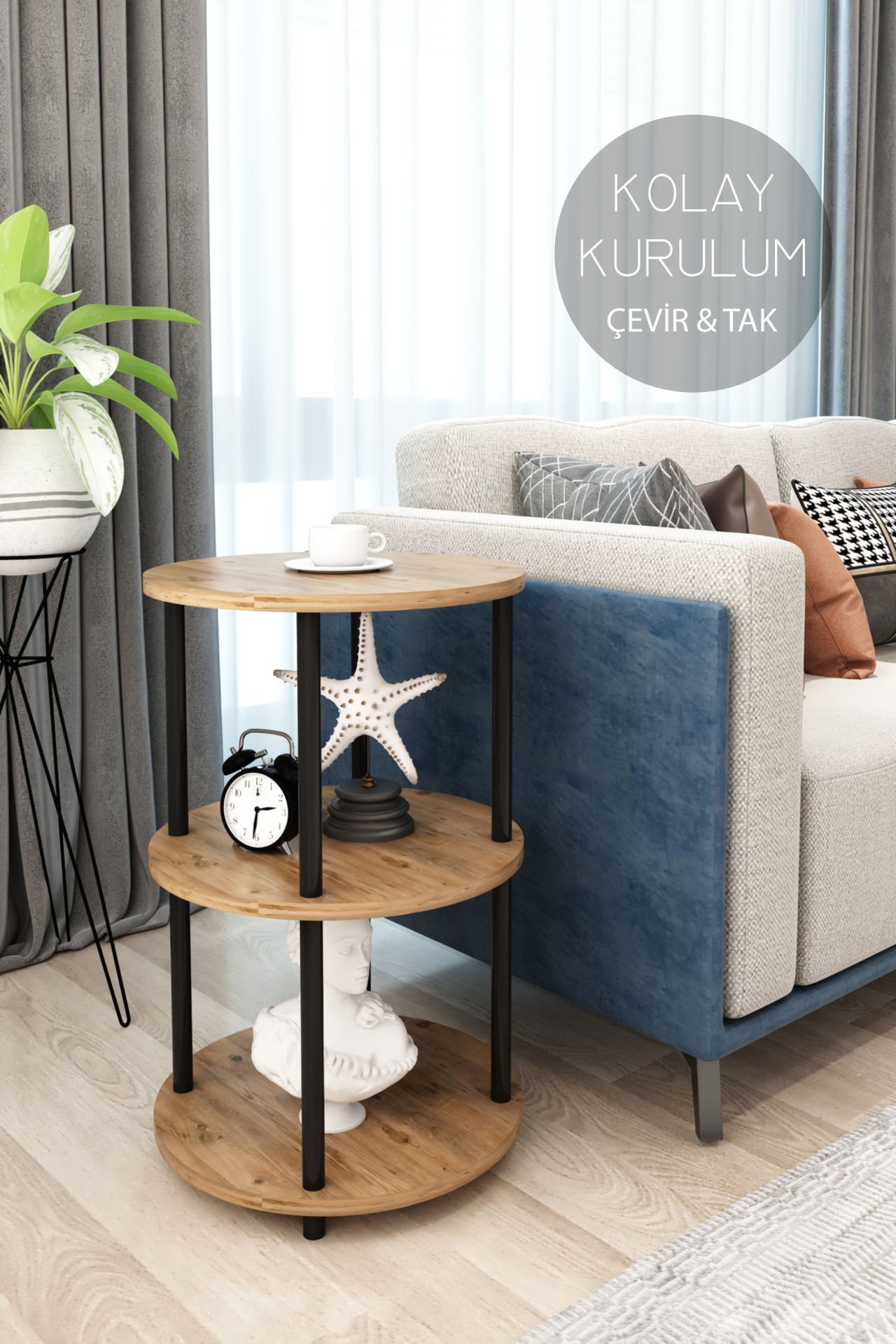 3 Raflı Yuvarlak Tasarım Çevir Tak Yan Sehpa Kitaplık Özel Tasarım Dekoratif Çevir Kur Kolay Montaj