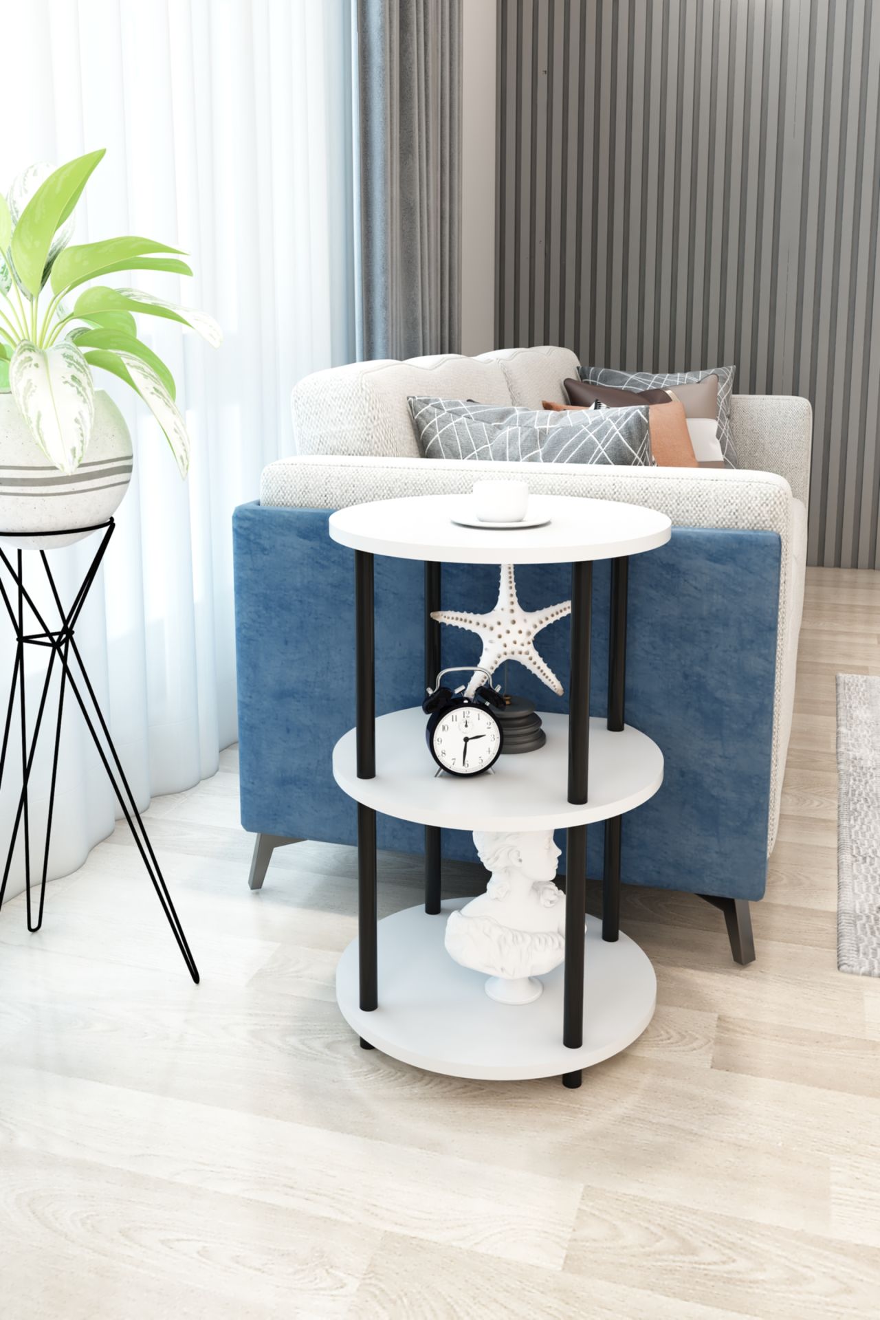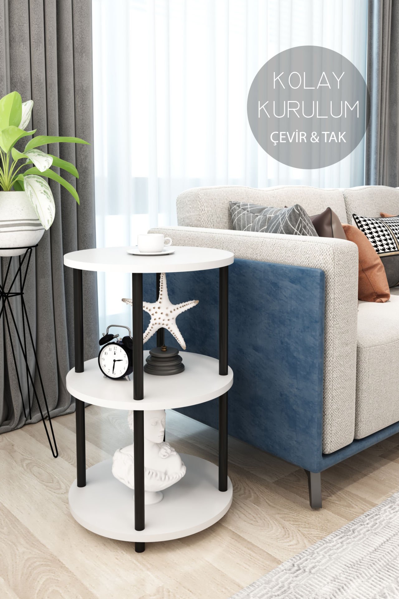 3 Raflı Yuvarlak Tasarım Çevir Tak Yan Sehpa Kitaplık Özel Tasarım Dekoratif Çevir Kur Kolay Montaj