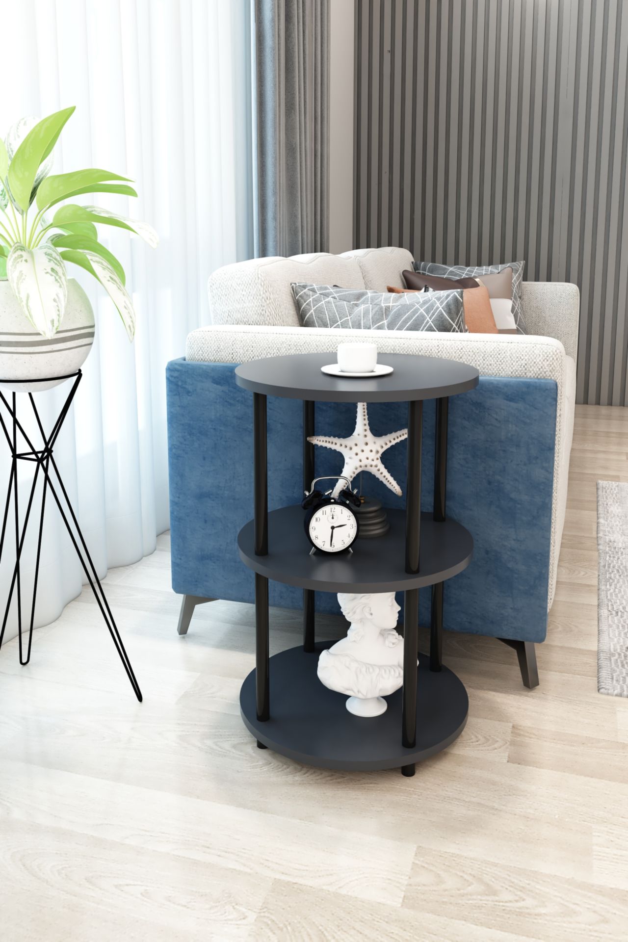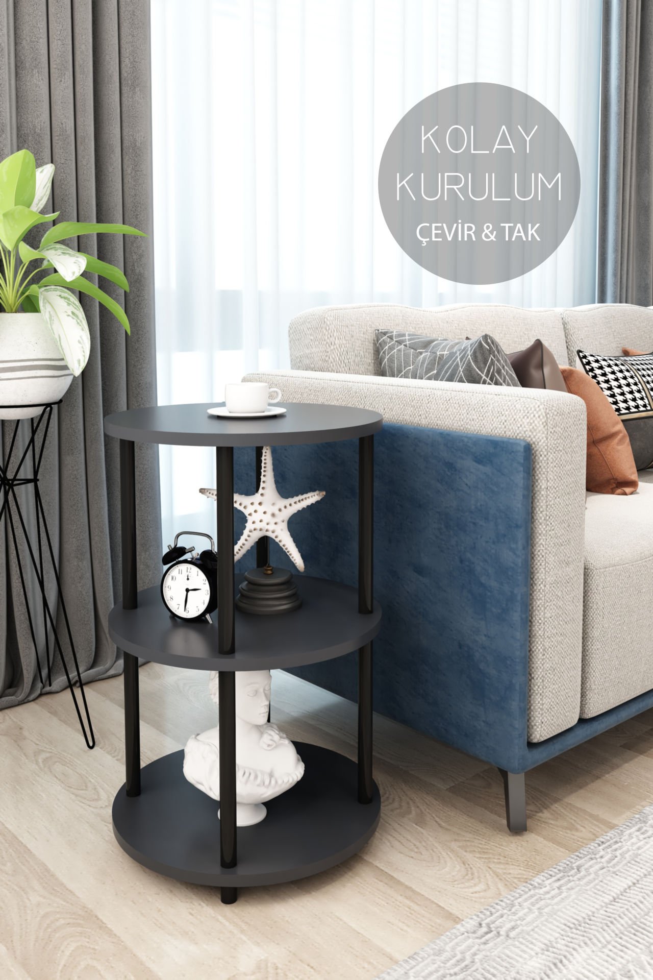 3 Raflı Yuvarlak Tasarım Çevir Tak Yan Sehpa Kitaplık Özel Tasarım Dekoratif Çevir Kur Kolay Montaj