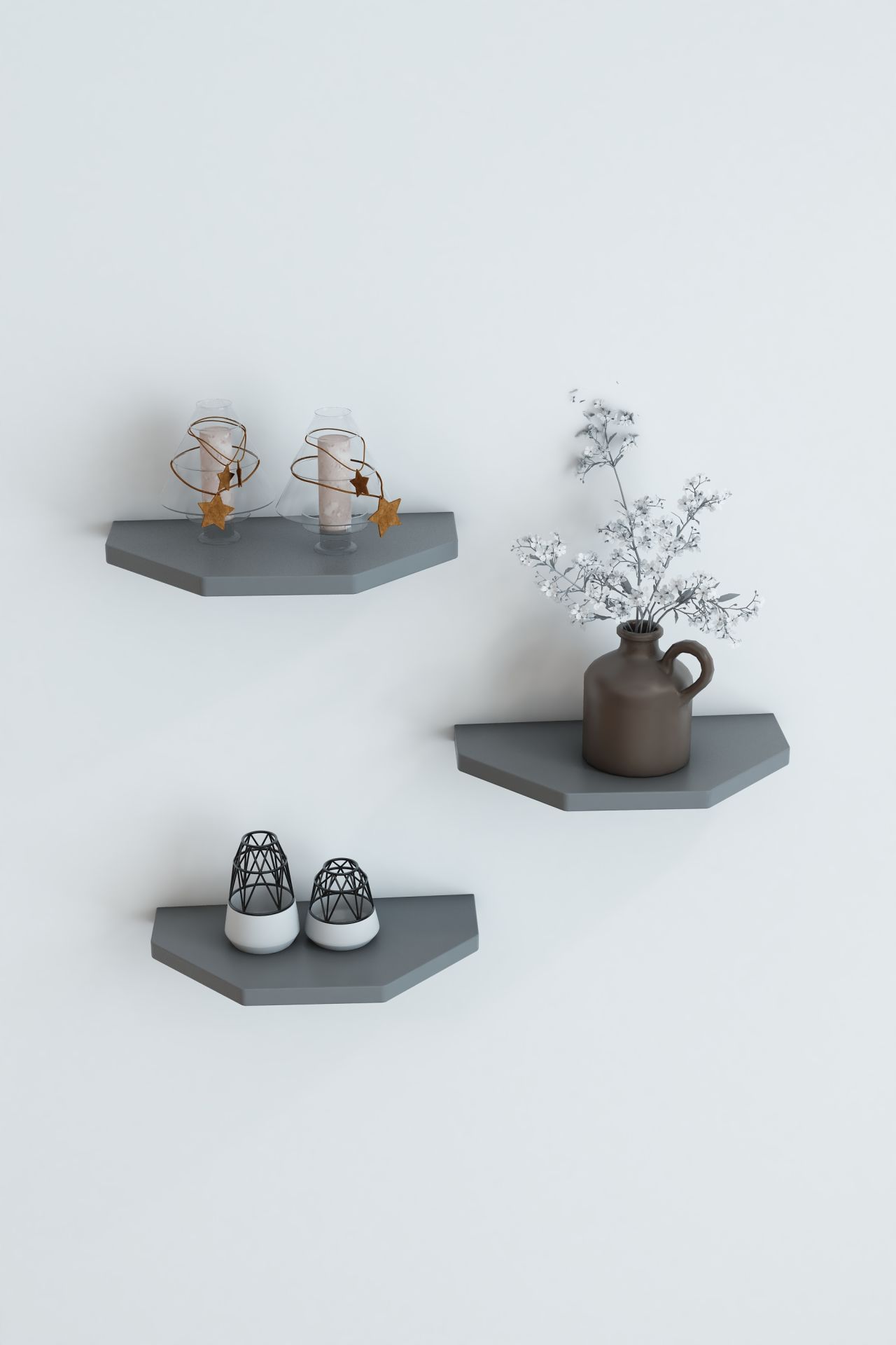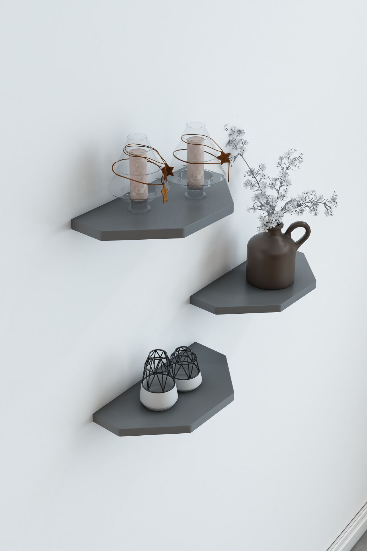 3'Lü Dekoratif Şık Duvar Rafı Uçan Raf Gizli Raf İskandinav Tasarım Modern Kitap Rafı Biblo Rafı