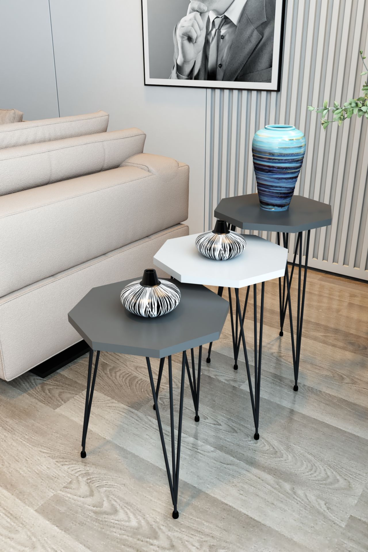 3'lü Zigon Sehpa Sekizgen Model Zigon Sehpa Metal Tel Ayak