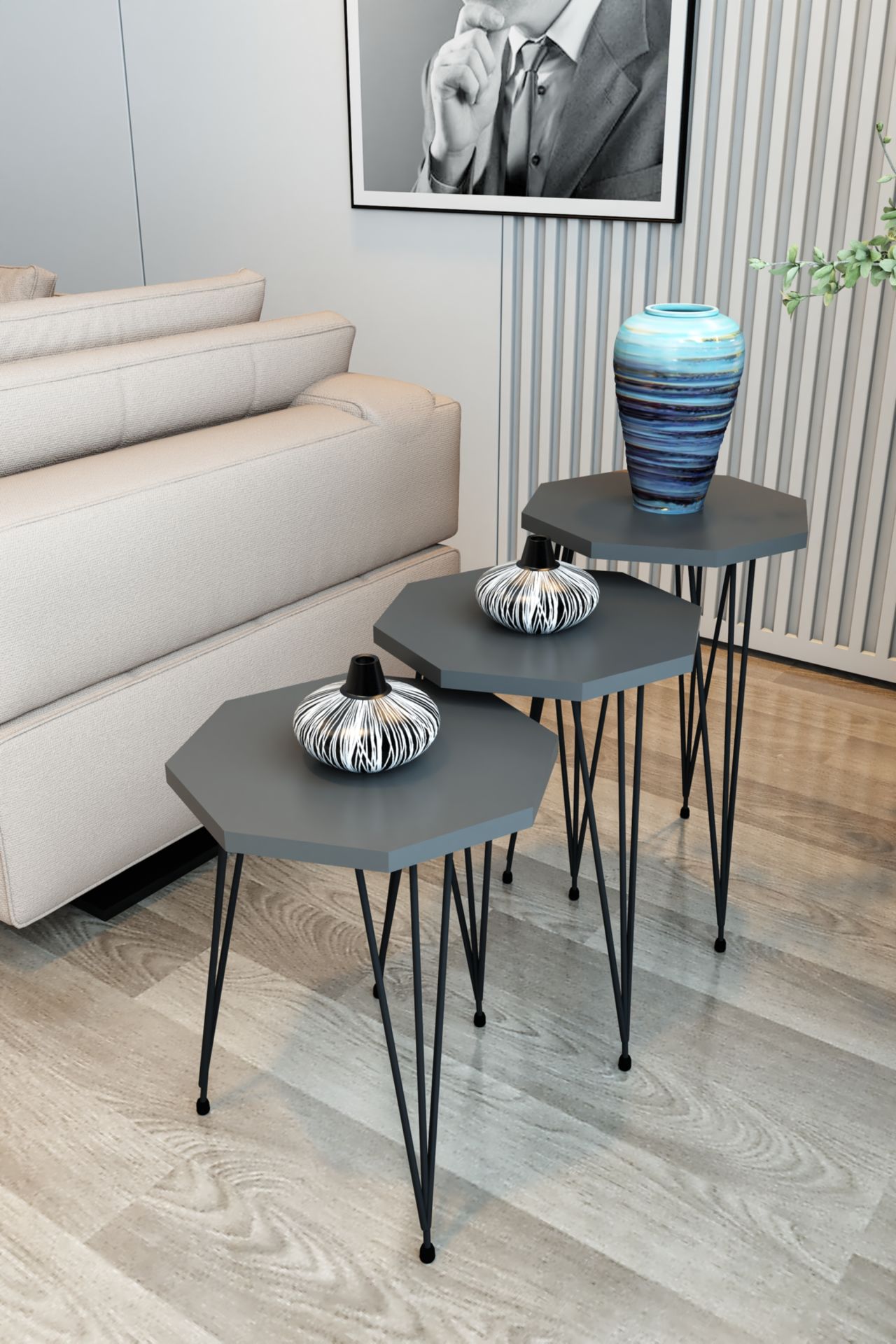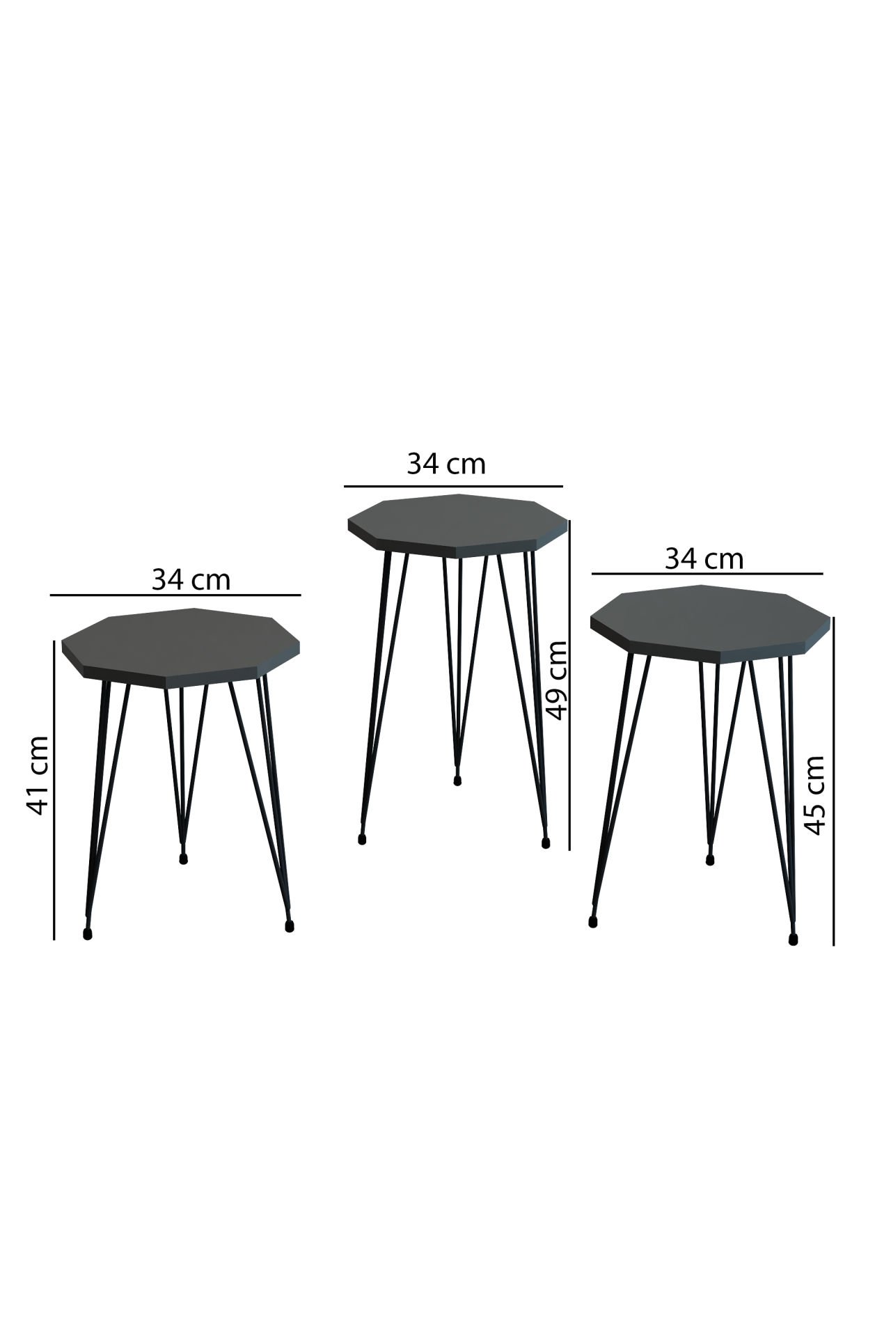 3'lü Zigon Sehpa Sekizgen Model Zigon Sehpa Metal Tel Ayak