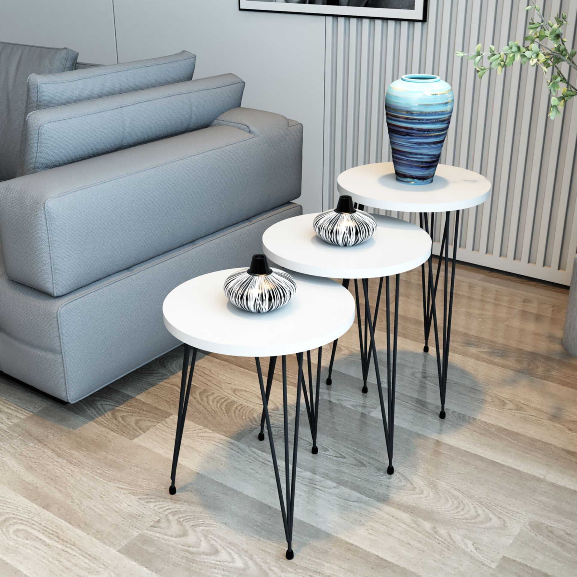 3'lü Zigon Sehpa Yuvarlak Model Zigon Sehpa Metal Tel Ayak