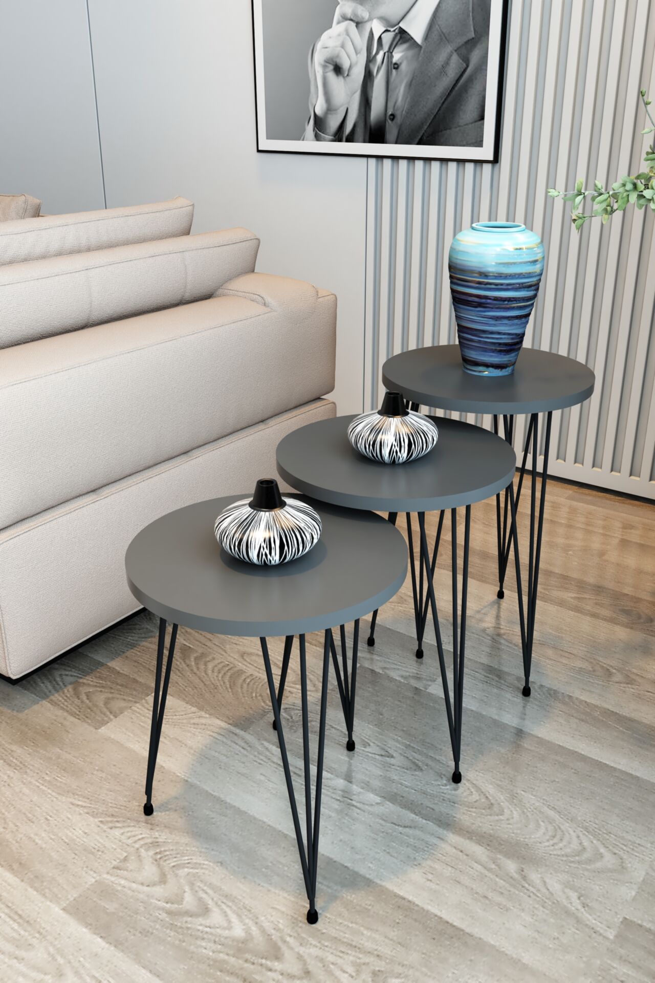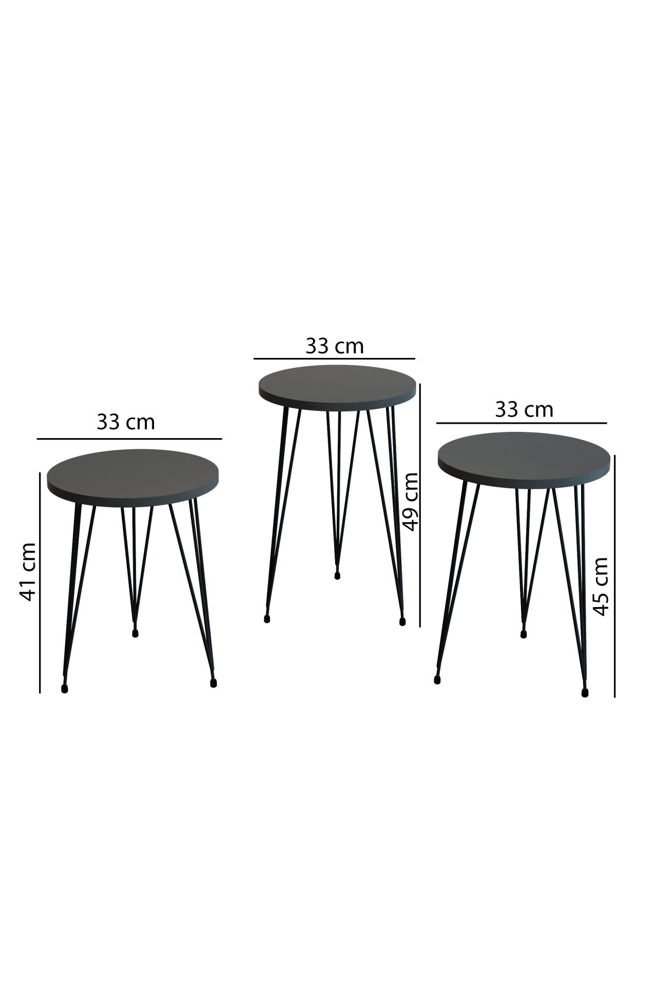 3'lü Zigon Sehpa Yuvarlak Model Zigon Sehpa Metal Tel Ayak