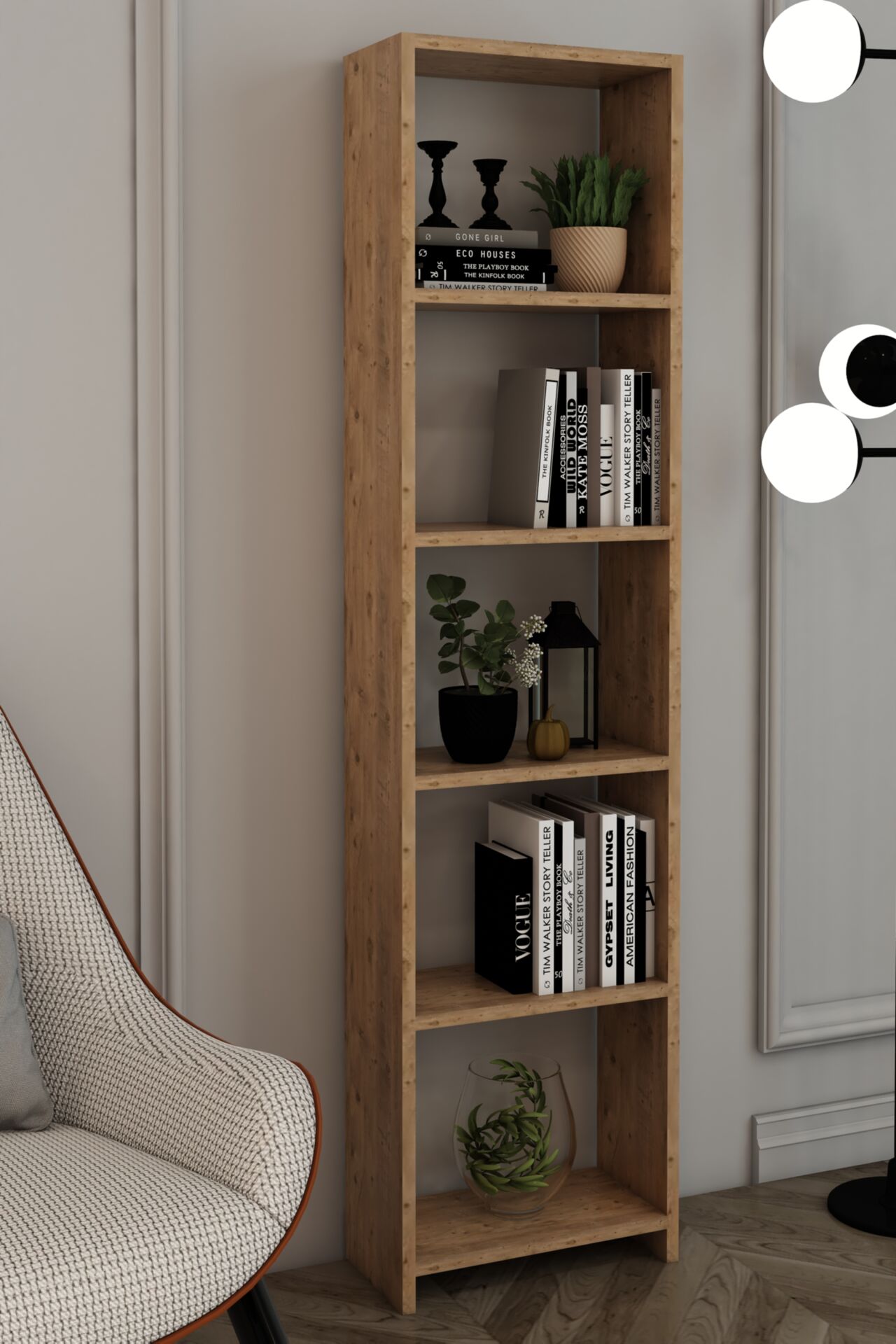 6 Raflı 40 Cm Dekoratif Kitaplık Ceviz Kitaplık Ofis Kitaplığı Dolap Evrak Rafı Ev Rafı Kitap Rafı