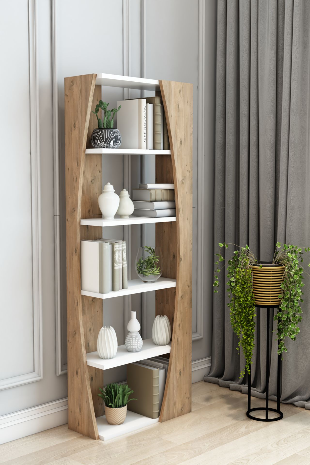 İskandinav Model 6 Raflı Kitaplık Dekoratif Salon Kitaplığı Ofis Kitaplığı