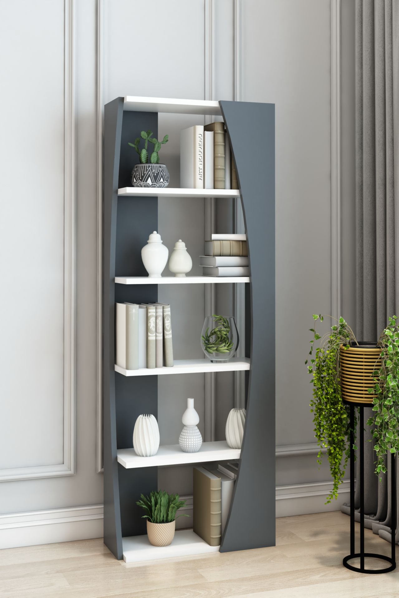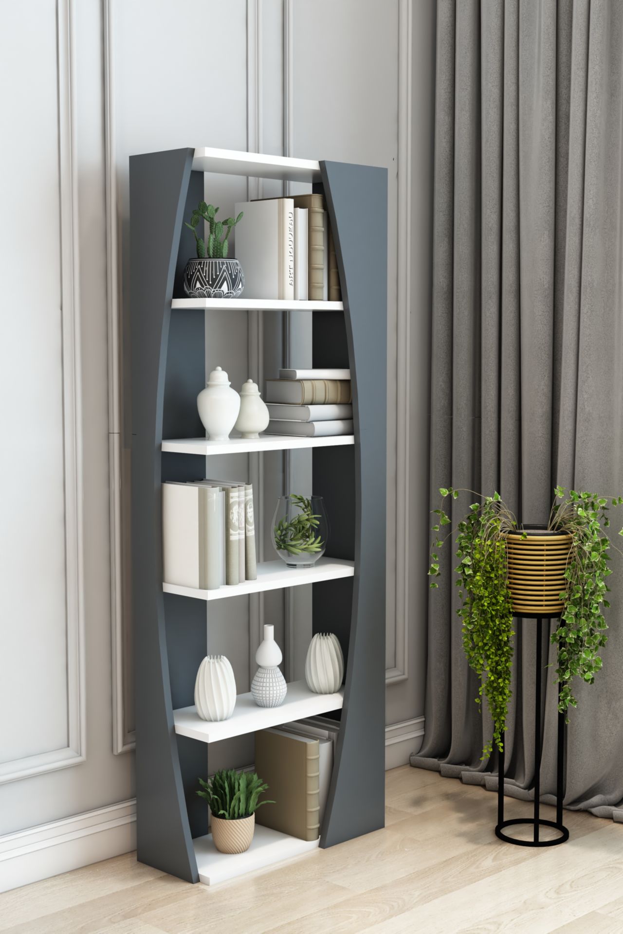 İskandinav Model 6 Raflı Kitaplık Dekoratif Salon Kitaplığı Ofis Kitaplığı