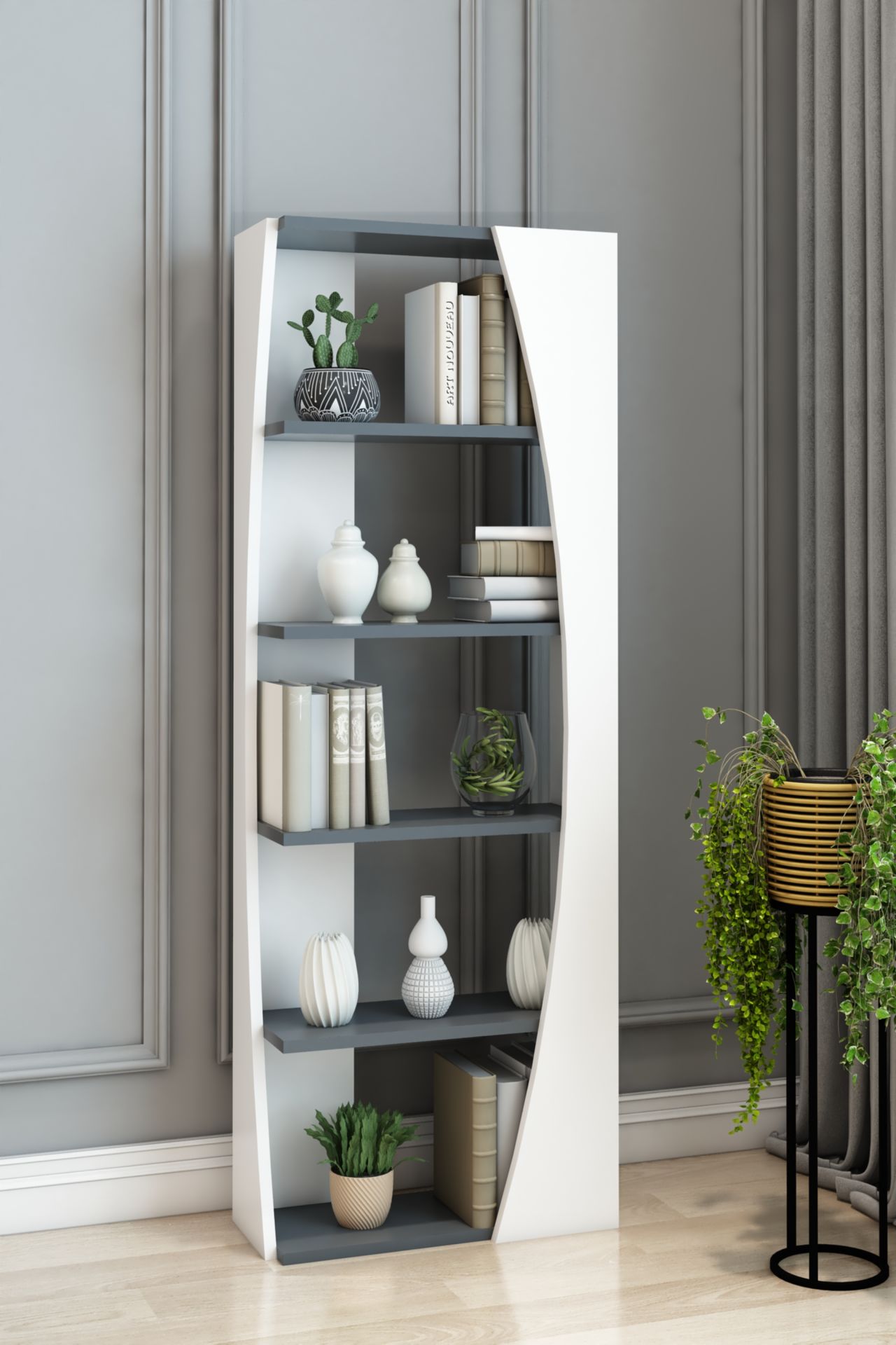 İskandinav Model 6 Raflı Kitaplık Dekoratif Salon Kitaplığı Ofis Kitaplığı
