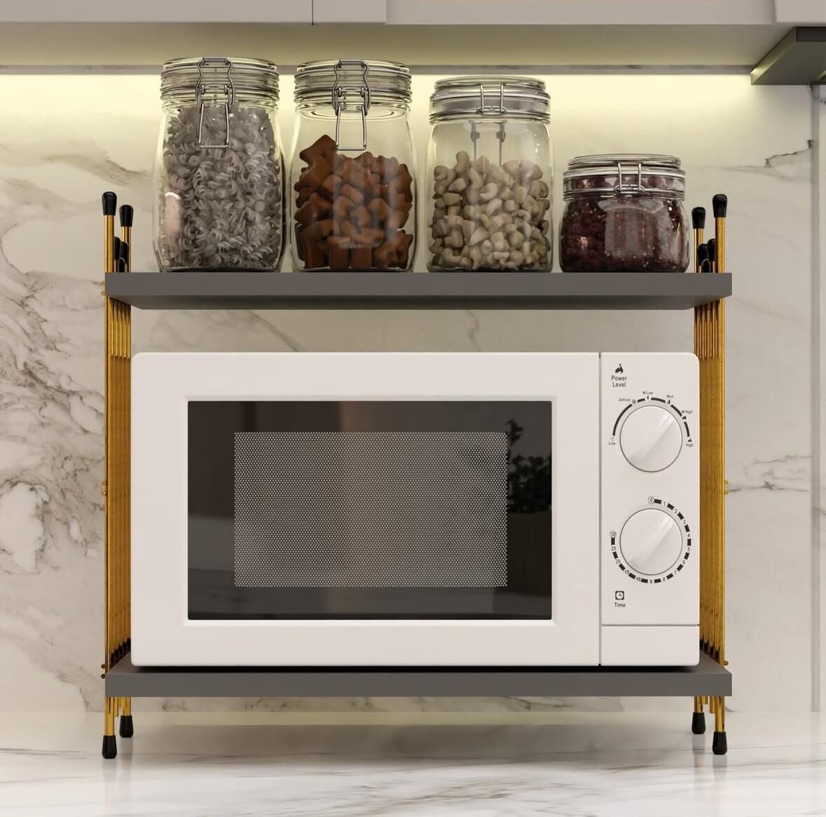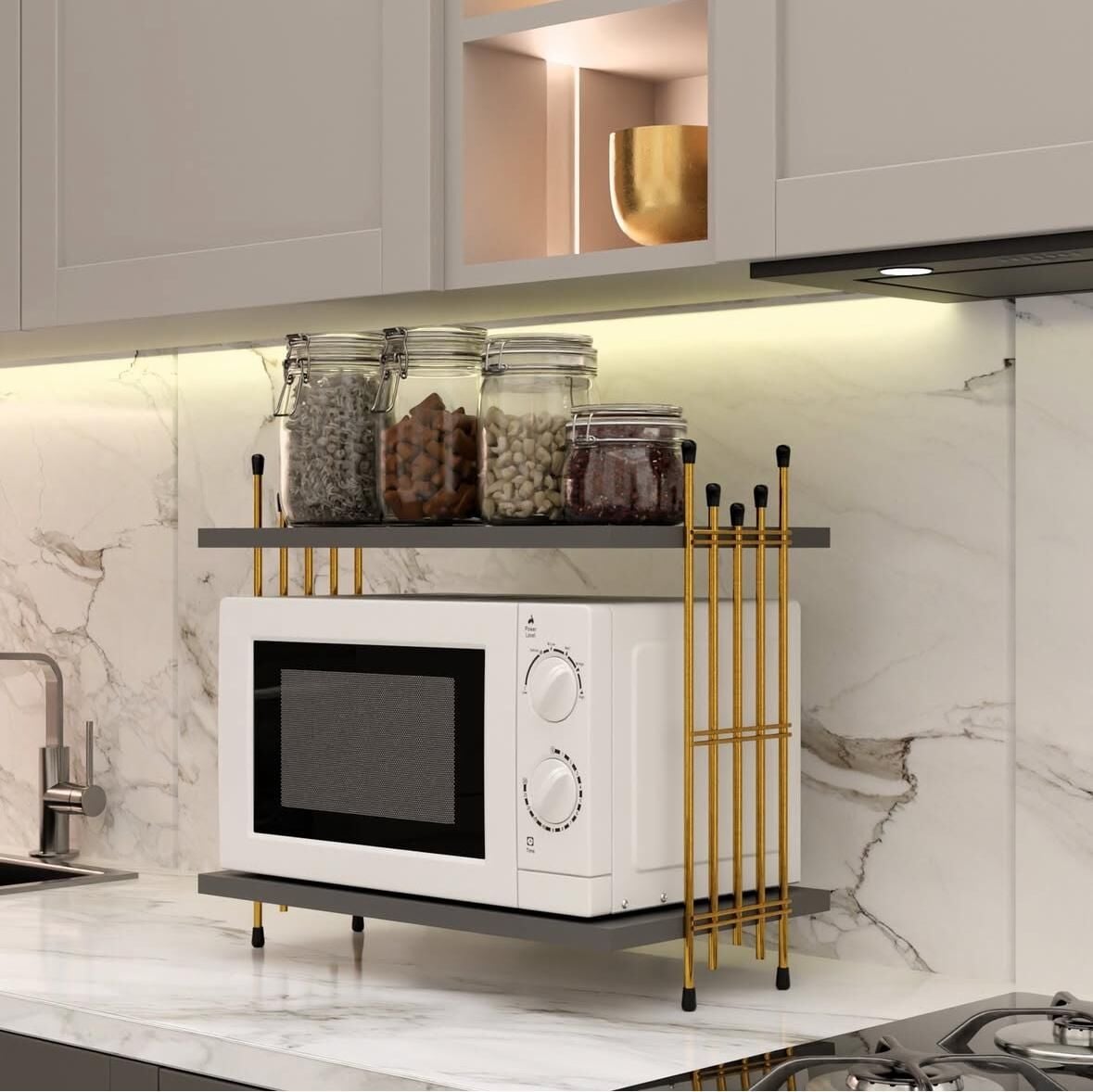 Küçük mutfaklarda yer kazanmak, dağınıklığı ortadan kaldırmak ve kullanım alanını estetikle birleştirmek isteyen herkes için ideal bir üründür.Mikrodalga Üstü Raf Tezgah Üstü Mutfak Organizer Gold Çam Tel Ayaklı Çok Amaçlı Raf DüzenleyiciMikrodalga üstü raf sistemi, küçük mutfaklarda yer kazanmak için idealdir." "Mikrodalga üstü raf, mutfakta hem fonksiyonel hem de dekoratif bir çözüm sunar."