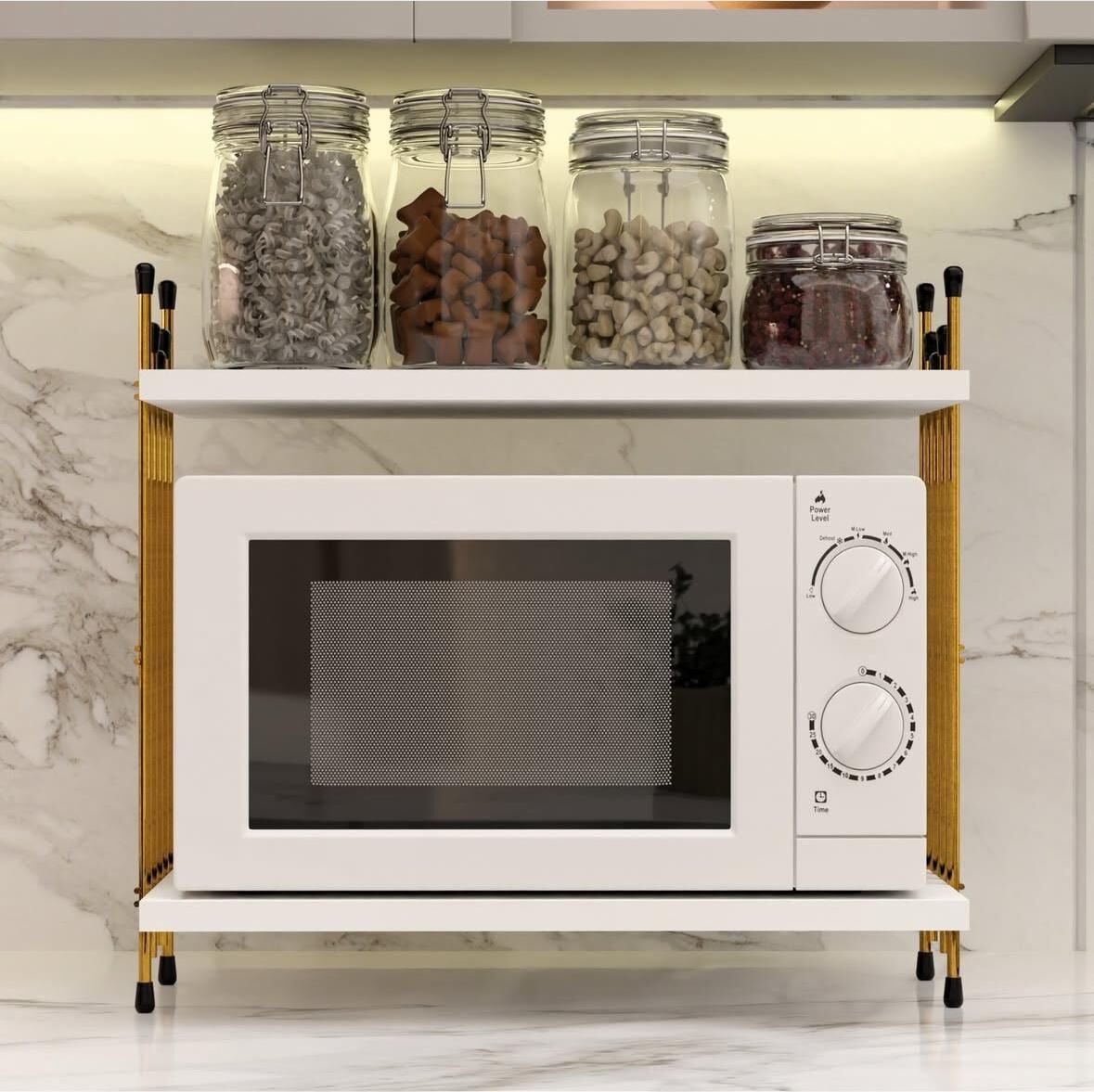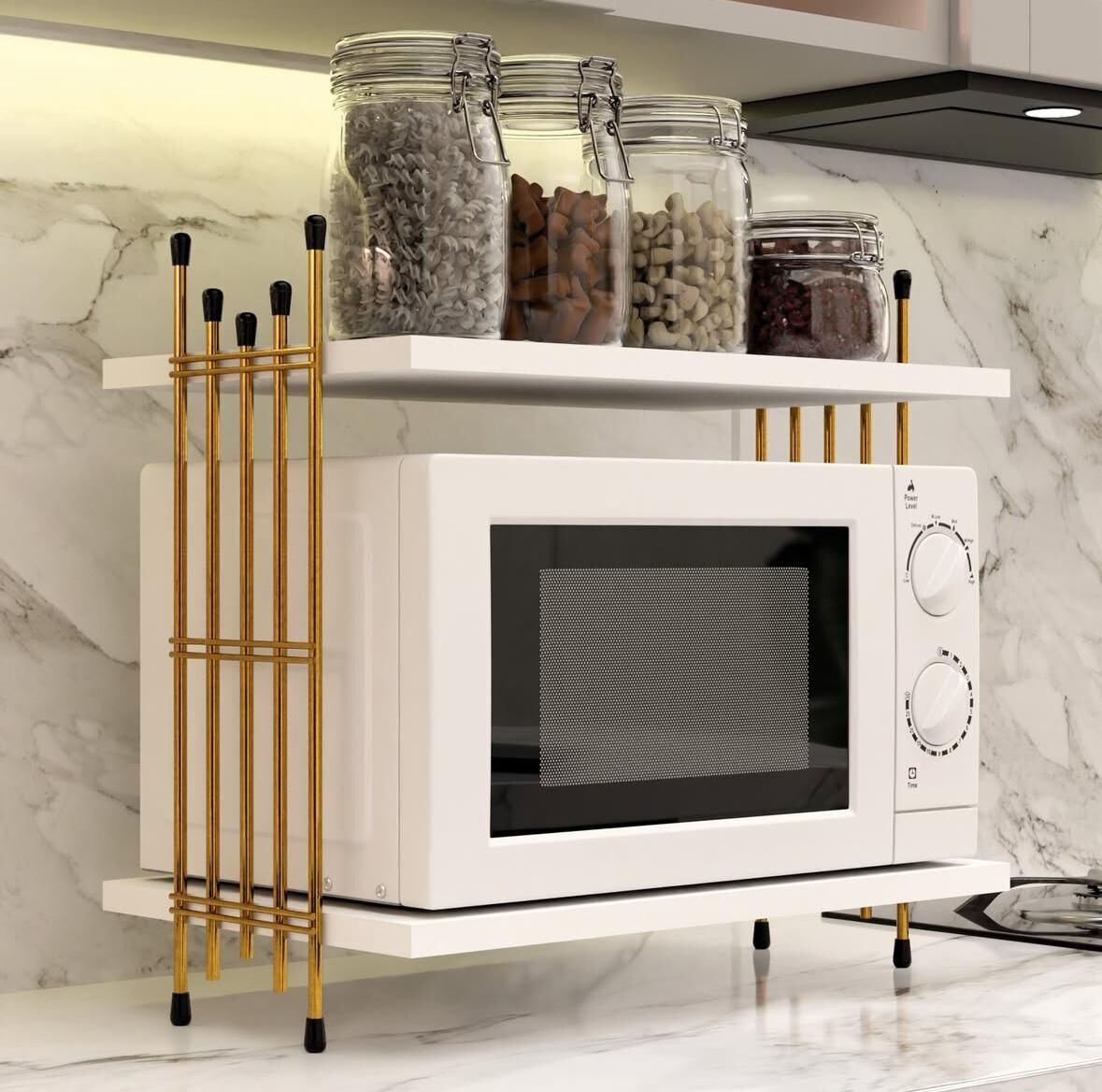 Mikrodalga Üstü Raf Tezgah Üstü Mutfak Organizer Gold Beyaz Atlantik Çam Tel Ayaklı Çok Amaçlı Raf Düzenleyici