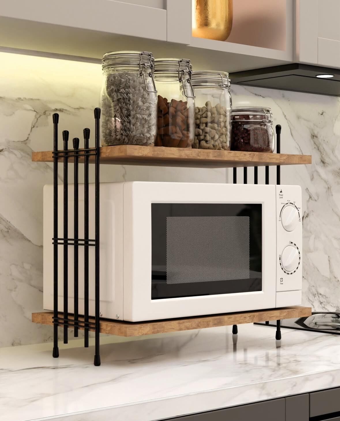 Küçük mutfaklarda yer kazanmak, dağınıklığı ortadan kaldırmak ve kullanım alanını estetikle birleştirmek isteyen herkes için ideal bir üründür.Mikrodalga Üstü Raf Tezgah Üstü Mutfak Organizer Siyah Çam Tel Ayaklı Çok Amaçlı Raf DüzenleyiciMikrodalga üstü raf sistemi, küçük mutfaklarda yer kazanmak için idealdir." "Mikrodalga üstü raf, mutfakta hem fonksiyonel hem de dekoratif bir çözüm sunar."