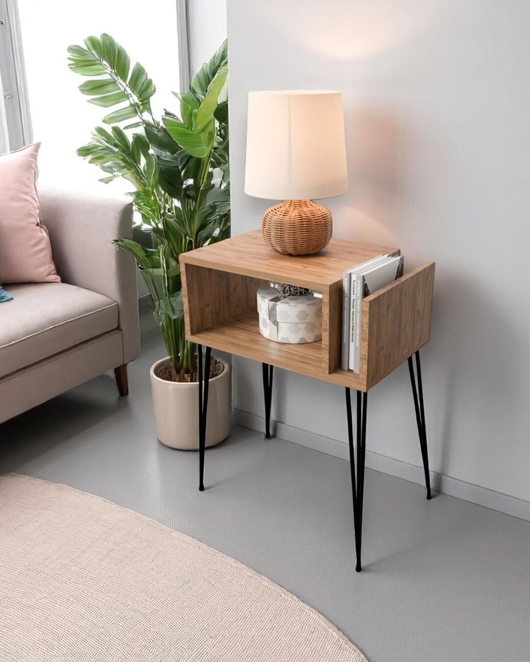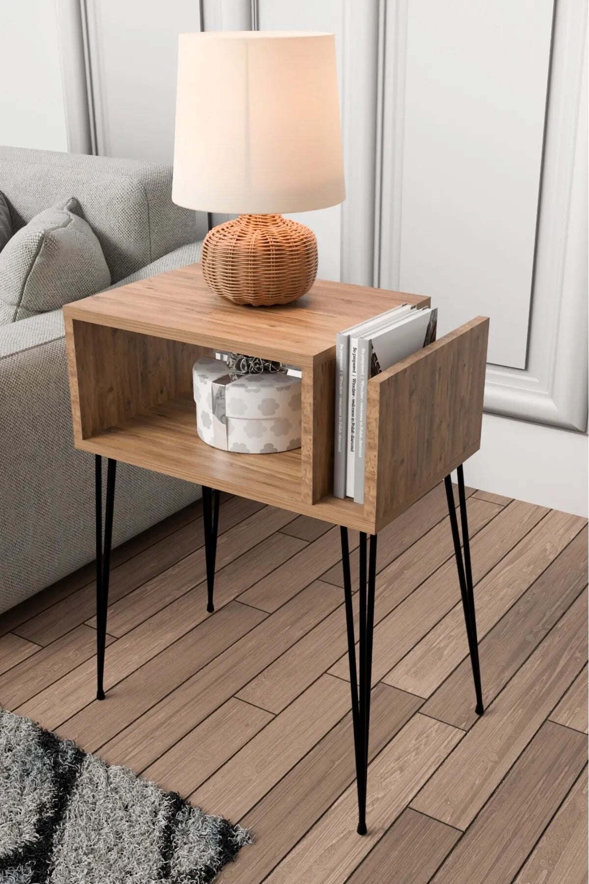 Begonya Koltuk Yanı Sehpa Raflı, Gazetelik Bölmeli, Metal Ayaklı, Şık ve Fonksiyonel Tasarım