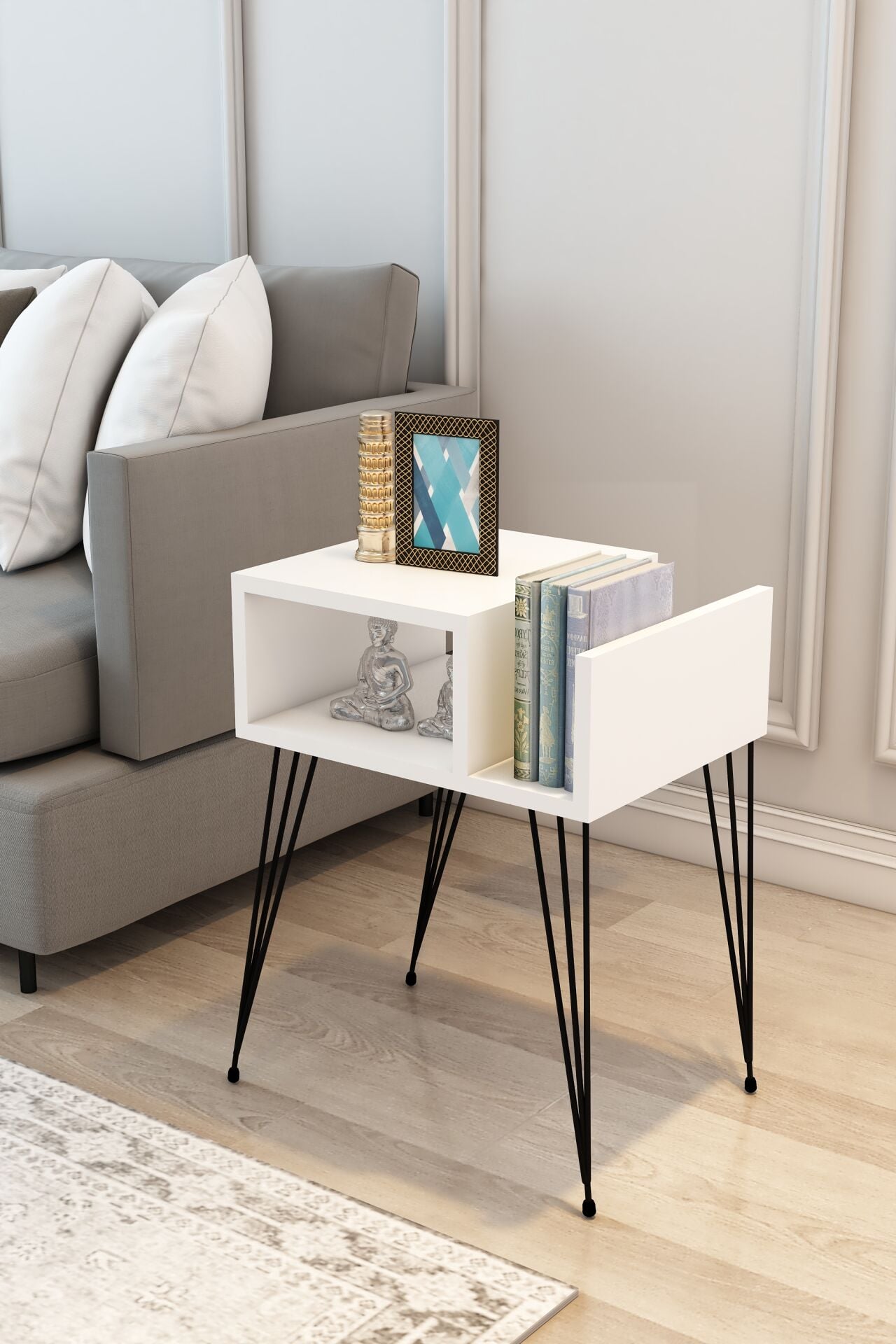 Modalanka Begonya Koltuk Yanı Sehpa - Raflı, Gazetelik, Süslük, Kitaplık, Dergilik ve Metal Ayaklı Şık SehpaBegonya Koltuk Yanı Sehpa Raflı, Gazetelik Bölmeli, Metal Ayaklı, Şık ve Fonksiyonel Tasarım