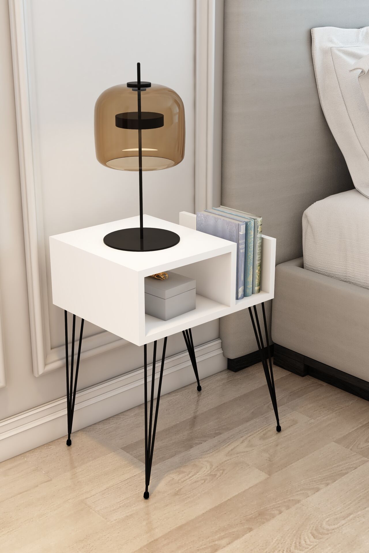 Modalanka Begonya Koltuk Yanı Sehpa - Raflı, Gazetelik, Süslük, Kitaplık, Dergilik ve Metal Ayaklı Şık Sehpa Beyaz